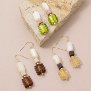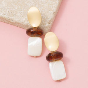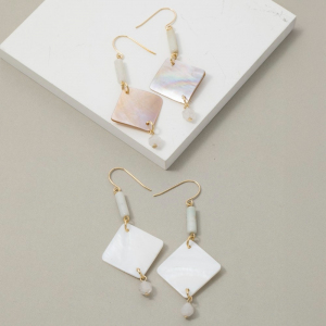Oval Shell And Stone Dangle Earrings