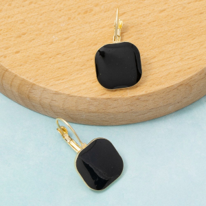Gold Black Onyx Square Leverback Earrings