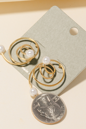 Curly Metallic Wire Pearl Bead Stud Drop Earrings