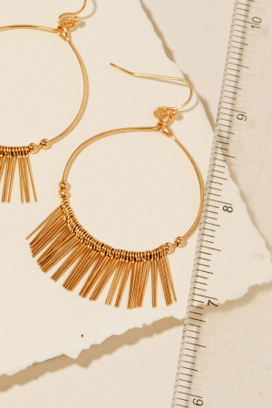 Textured Metallic Bar Fringe Hoop Dangle Earrings