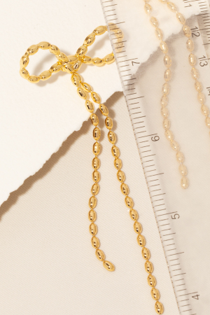Beaded Chain Ribbon Bow Charm Dangle Earrings