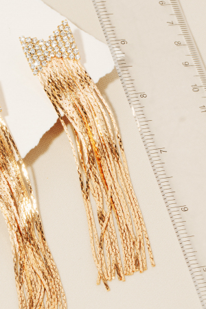 Rhinestone Pave Fringe Ribbon Bow Stud Drop Earrings