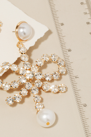 Rhinestone And Pearl Ribbon Bow Dangle Earrings