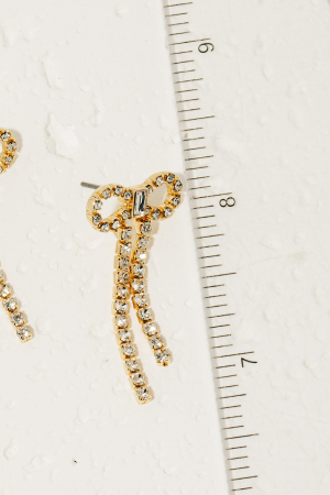 Rhinestone Ribbon Bow Stud Dangle Earrings