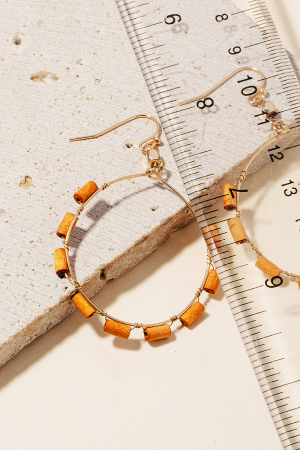 Wooden Tube Beaded Hoop Dangle Earrings