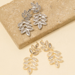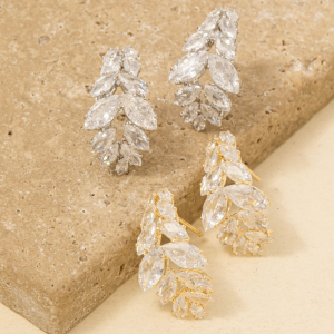 Faceted Oval Cz Fern Branch Stud Drop Earrings