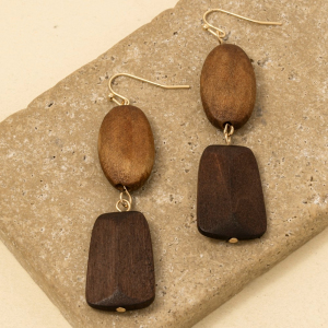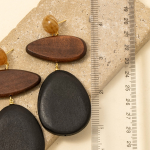 Mixed Wooden Ovals Tiered Dangle Earrings