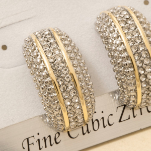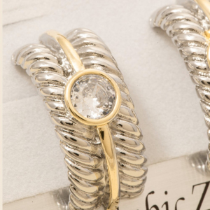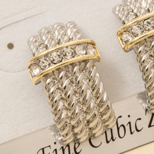 Gold Dipped Two Tone Cz Stud Rope Pattern Drop Earrings