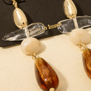 Metallic Tear And Acrylic Beads Dangle Earrings