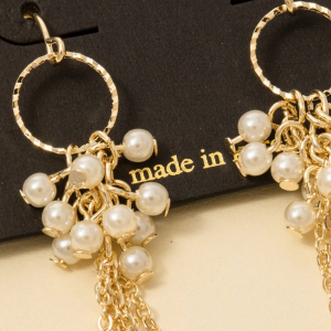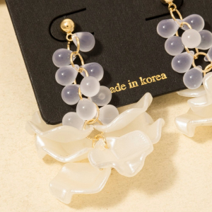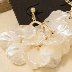 Pearl Metallic Beads And Petals Cluster Dangle Earrings