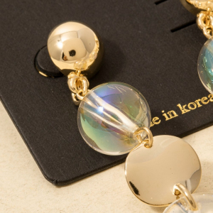 Iridescent Beads And Metallic Disc Dangle Earrings