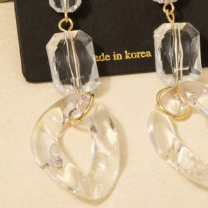Clear Iridescent Link And Faceted Beads Dangle Earrings