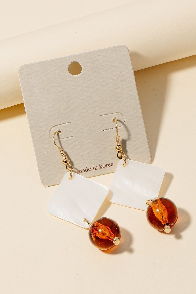 • A contemporary masterpiece, this pair of dangle earrings introduces an exceptional acrylic bead and shell square design. Transform your outfit into a fashion masterpiece with this versatile pair of dangle earrings, an essential for the style-conscious individual. This item is sold in packs of 1.