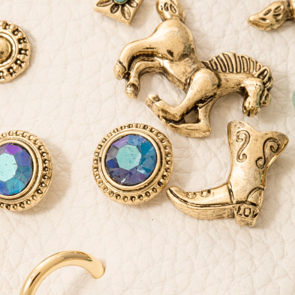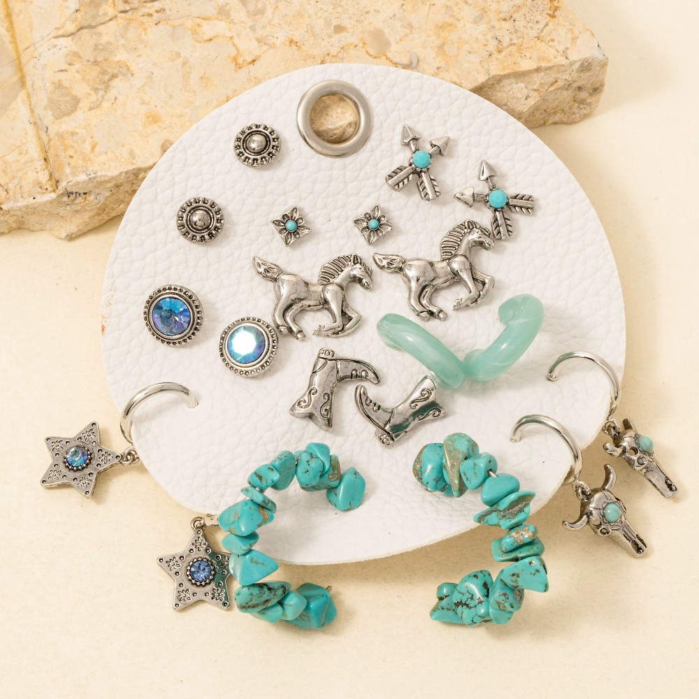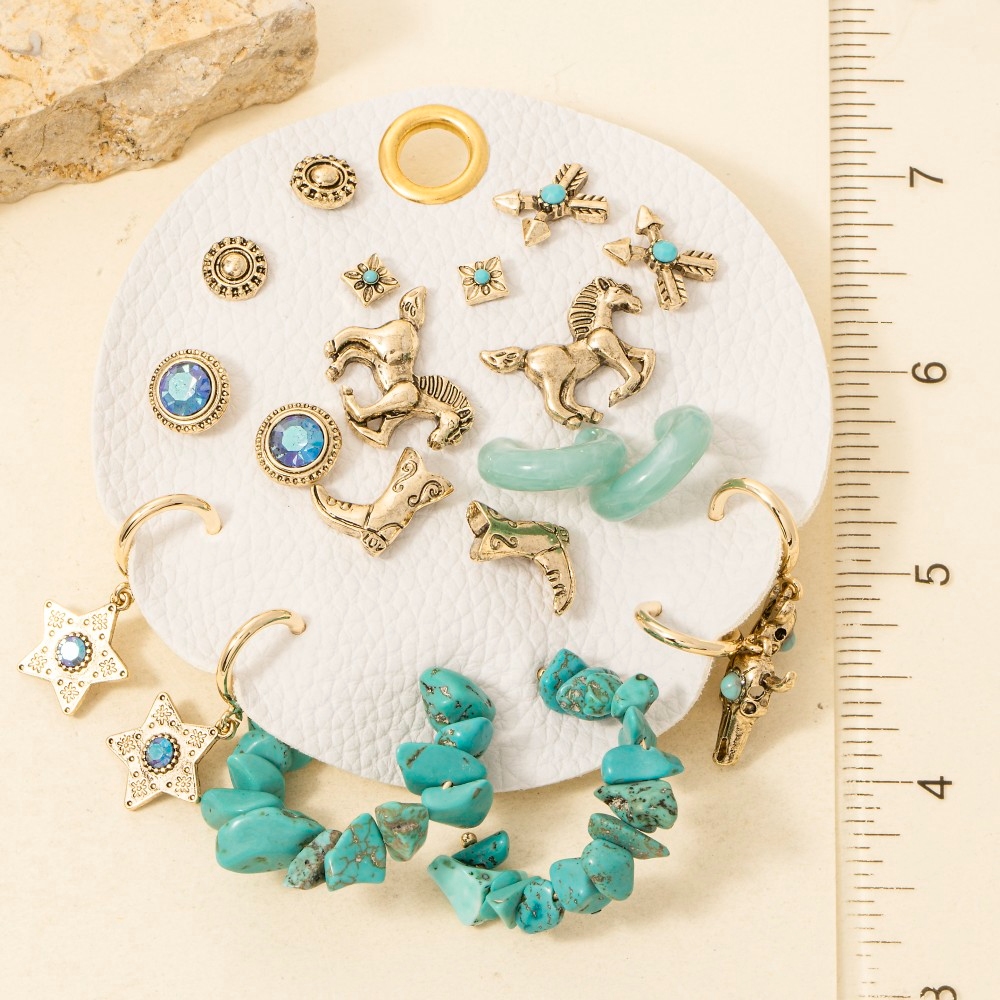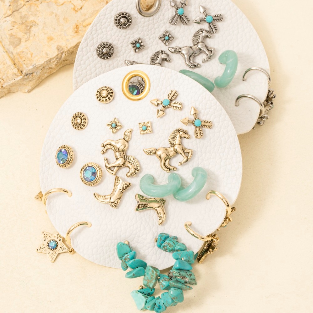 This piece is designed to make a statement, this pair of earrings displays a unique antique assorted western cowboy set design. Elevate your style effortlessly with this versatile pair of earrings, enhancing the appeal of any ensemble. Available in AGTUQ, ARTUQ. This item is sold in packs of 1.
