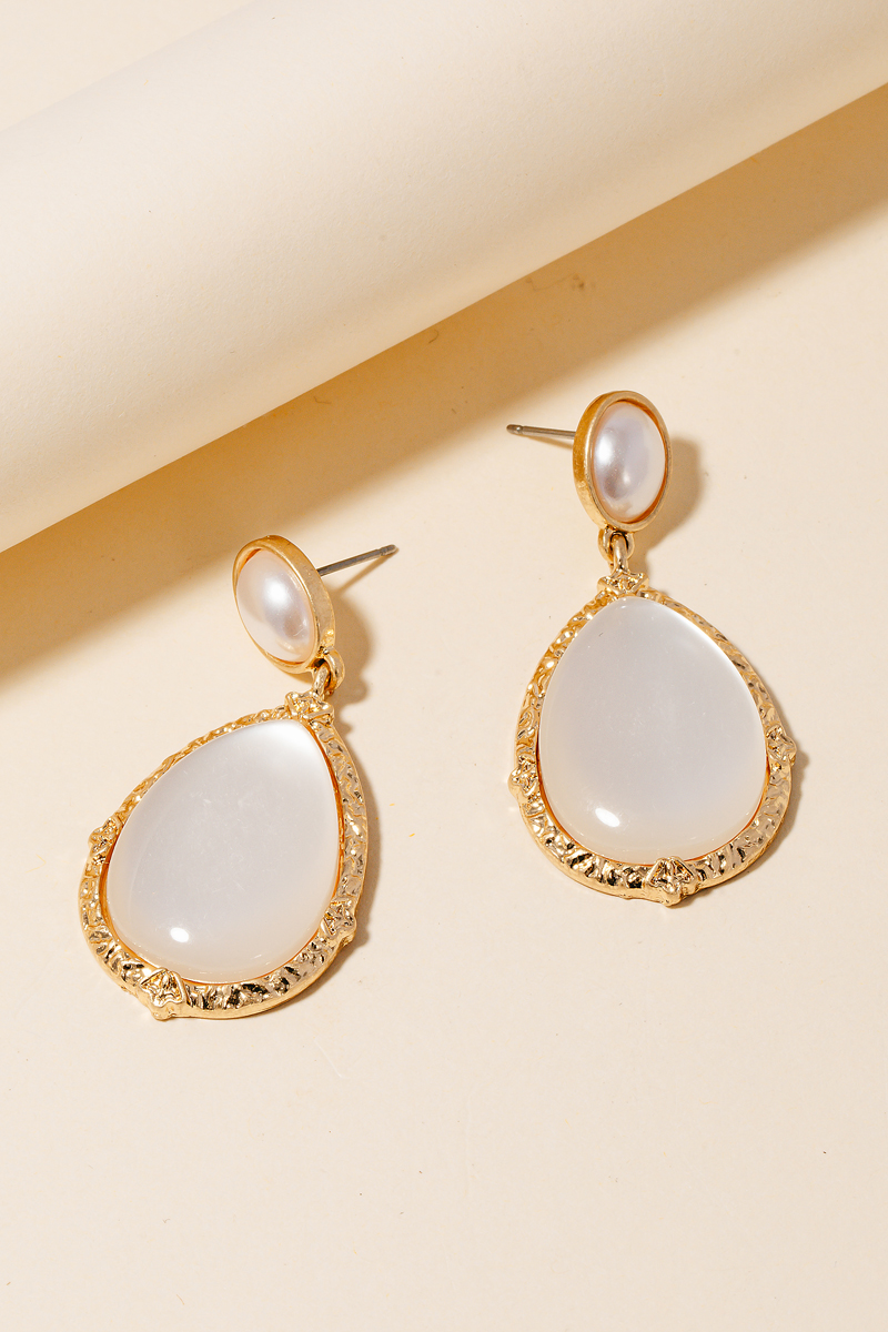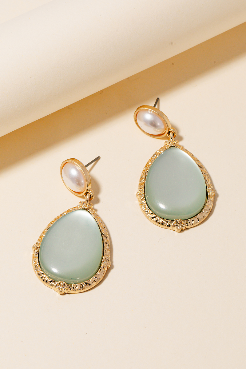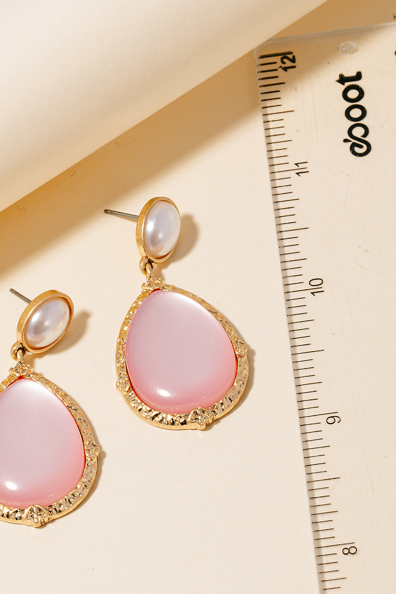 • A classic design with a modern twist, this pair of drop earrings emanates an elegant antique styled tear design. It also features a pearl stud and acrylic tear. This item is the perfect way to add some texture and interest to any outfit. Available in PNK, SAGE and WHT. This item is sold in packs of 1.