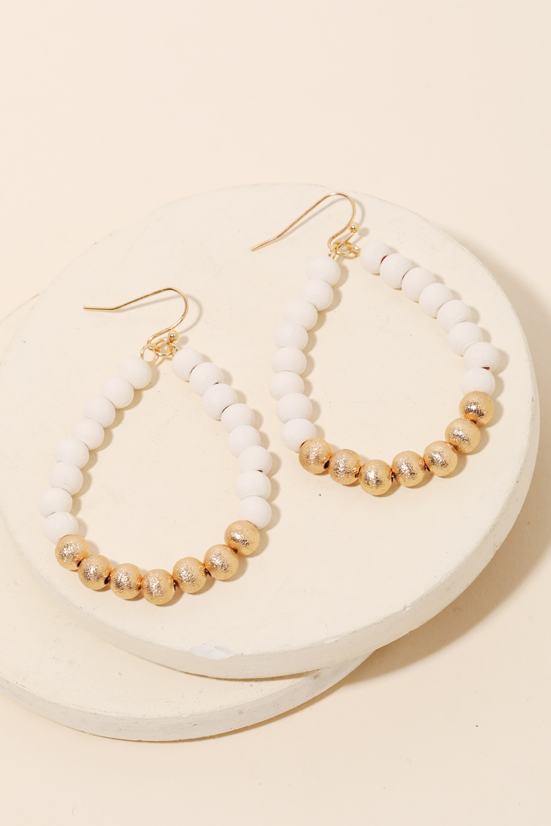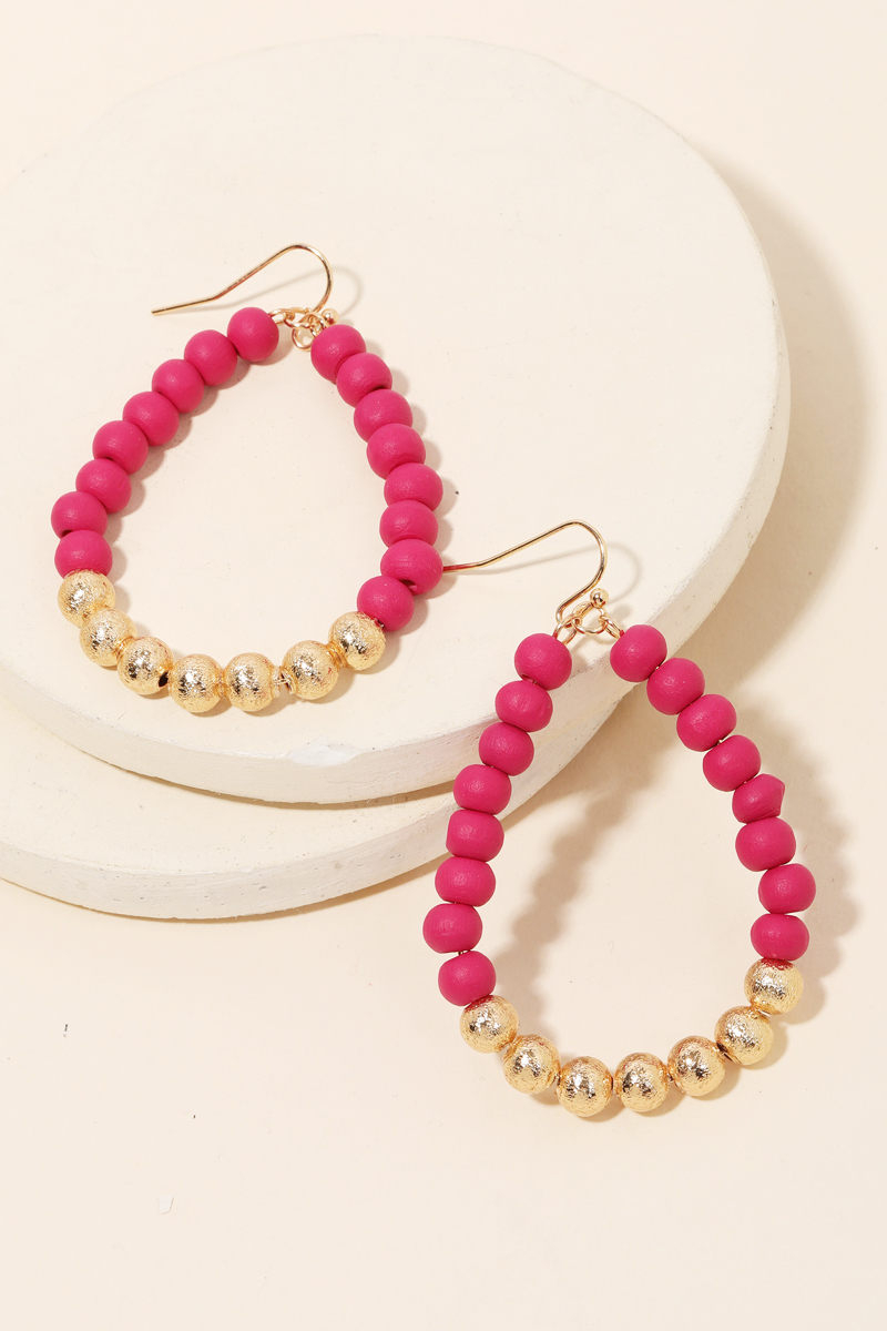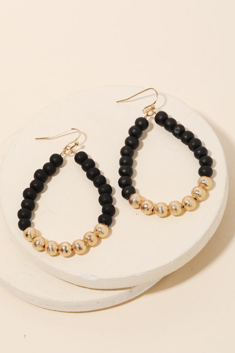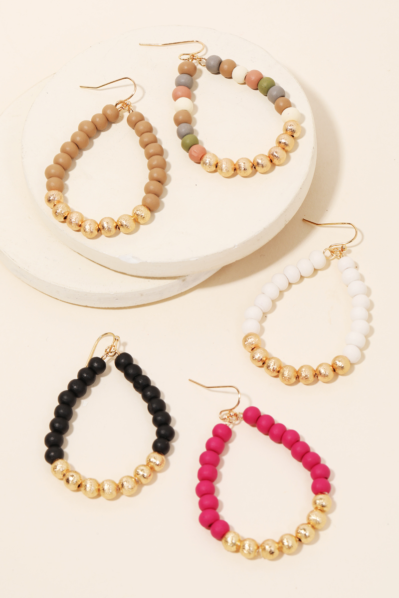 - An absolute must have trending in season pair of earrings is made into a ball beaded teardrop cutout earrings design. An absolutely gorgeous stunning must have. Available in BLK, FUCH, LBRW, LMULTI and WHITE. This item is sold in packs of 1.