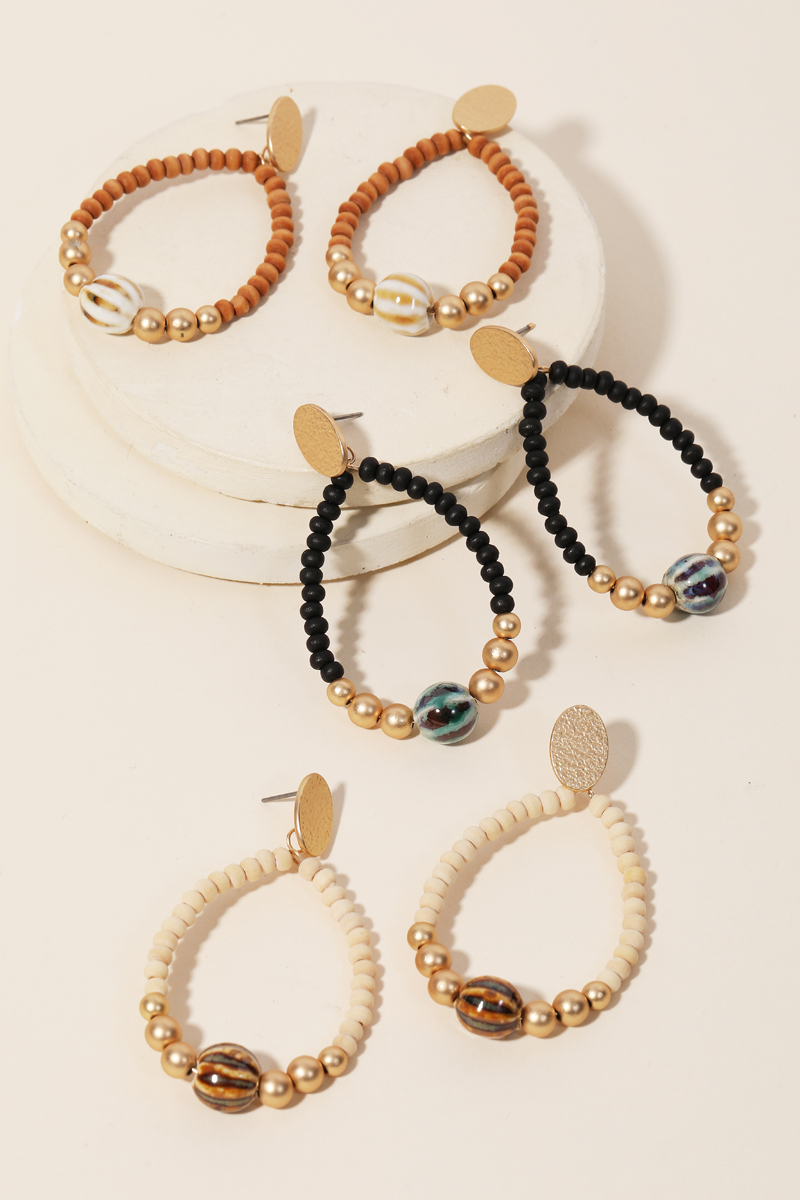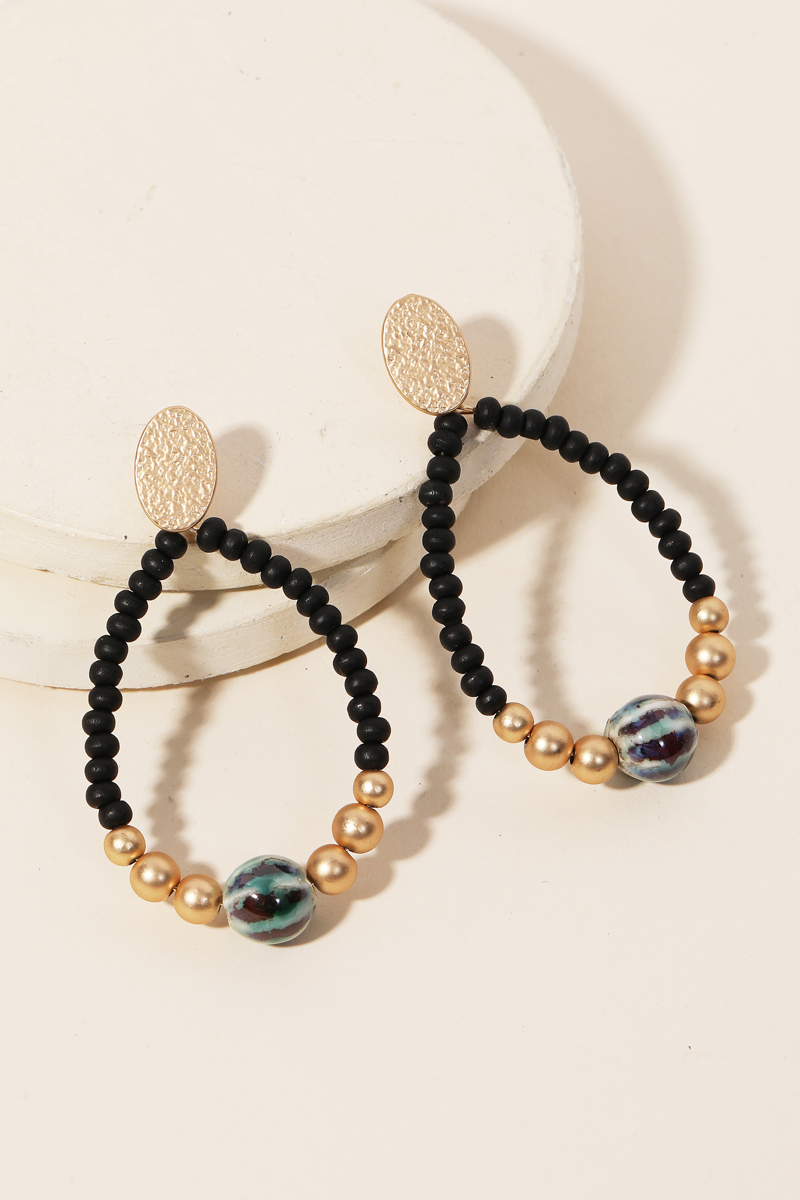 • This is an absolute must have pair of drop earrings that is designed with a beaded oval cutout drop earrings design. A must have choice for any occasion, casual or formal. Available in MGBK, MGIVBR and MGNAT.