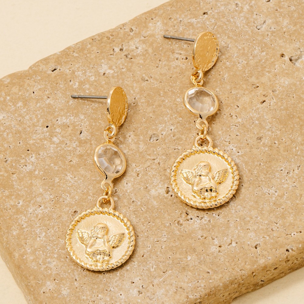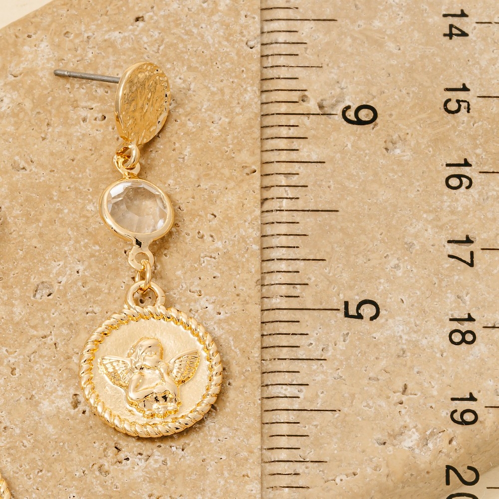 • The perfect way to showcase your unique style, this pair of dangle earrings flaunts a luxurious cherub coin and gem link design. Perfect for dressing up your favorite outfit, this pair of dangle earrings is a must-have. Available in GDCRY. This item is sold in packs of 1.