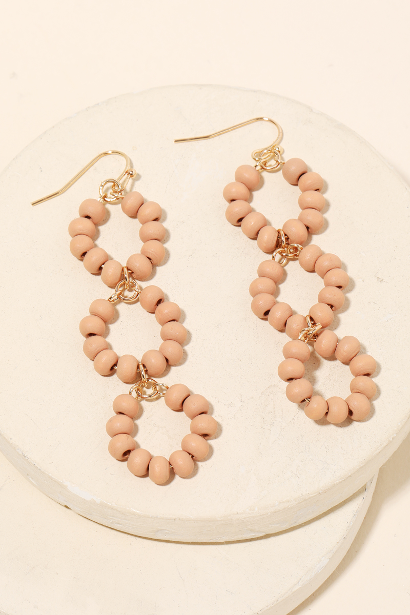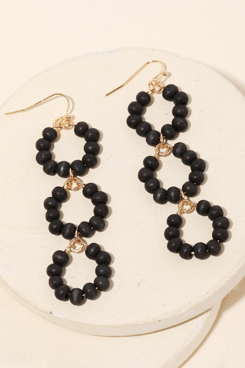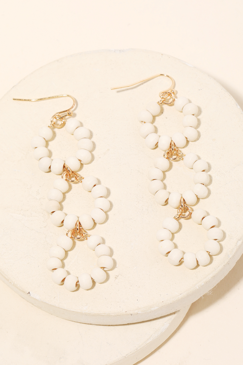 - A glamorous stunning classy unique and trending hot must have pair of drop earrings that features a gorgeous circle layered bead drop earrings design. Perfect for this Spring season! Available in BLK, BPINK, FUCH, LMOCHA and WHITE. This item is sold in packs of 1.