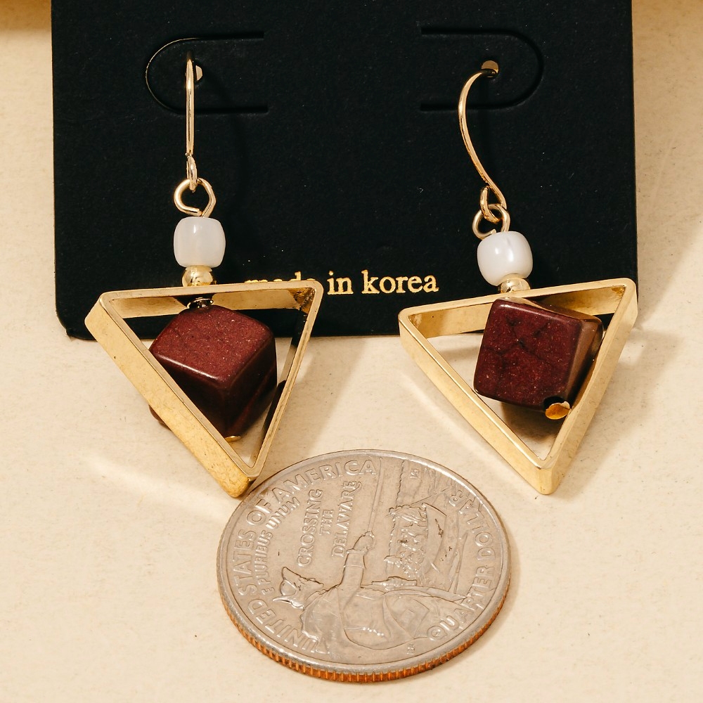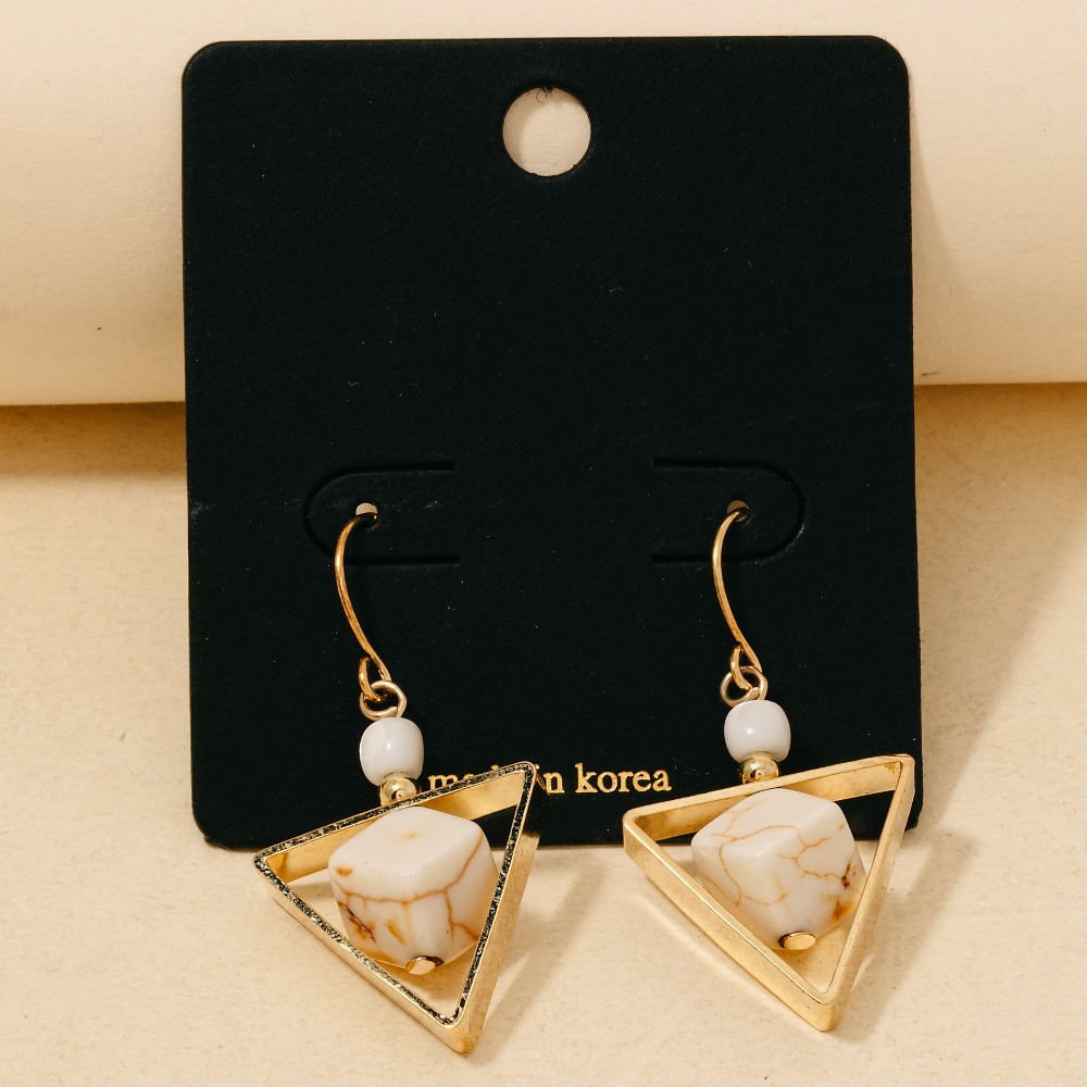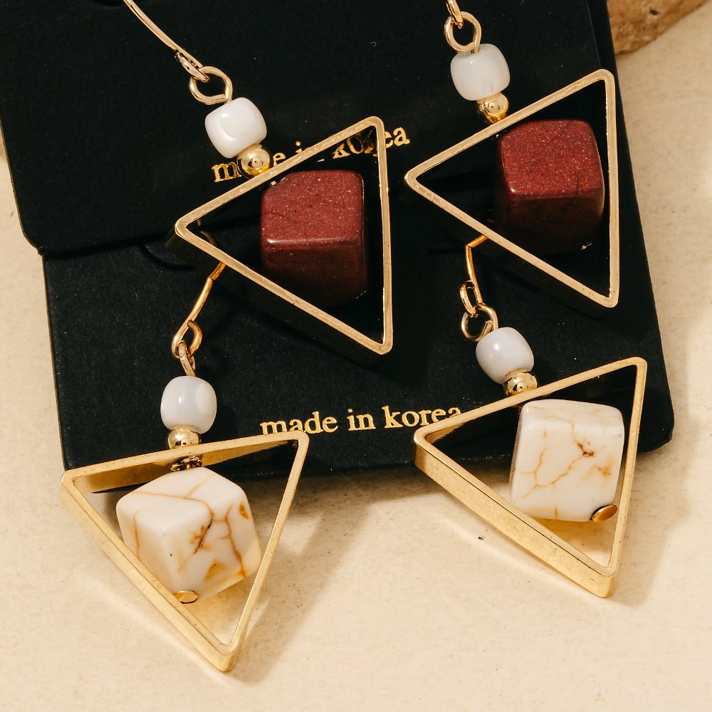 • Upgrade your pair of drop earrings game, this pair of drop earrings includes a stunning cube and triangle dangle design. Discover a new level of fashion versatility as this pair of drop earrings effortlessly elevates the allure of your attire. Available in BR, IV. This item is sold in packs of 1.