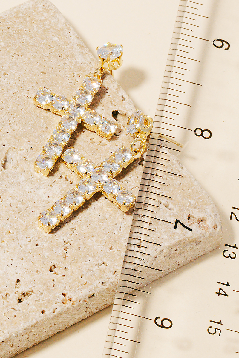 Stay on-trend and ahead of the fashion curve, this pair of dangle earrings boasts a magnificent cubic zirconia square pave cross design. Experience the transformative power of this versatile pair of dangle earrings, effortlessly enhancing the overall aesthetic of your outfit. Available in GD and S. This item is sold in packs of 1.