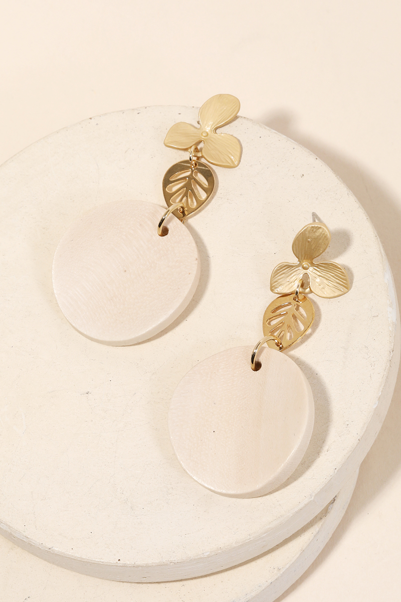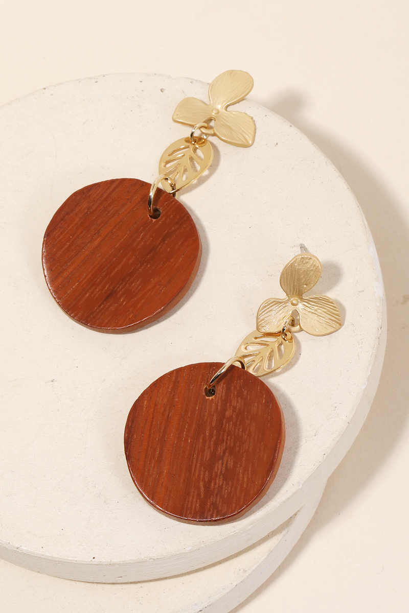 This new stunning must have pair of drop earrings that has a unique curved wooden disc drop earrings design. A perfect gift for the Spring season. Available in BR and IV. This item is sold in packs of 1.