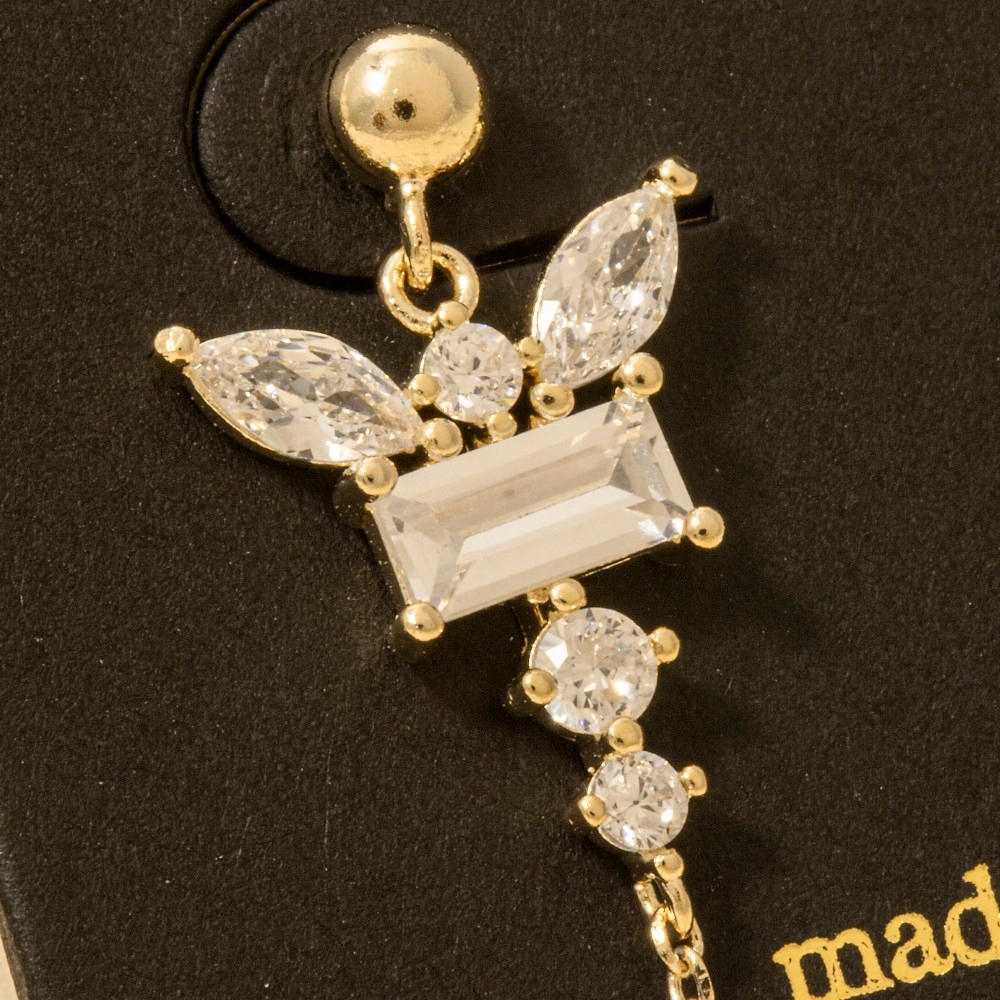 Upgrade your pair of dangle earrings game, this pair of dangle earrings showcases an alluring cz ovals and baguette chain design. Elevate your everyday style with this versatile pair of dangle earrings, a simple yet impactful addition to your fashion repertoire. Available in G, S. This item is sold in packs of 1.