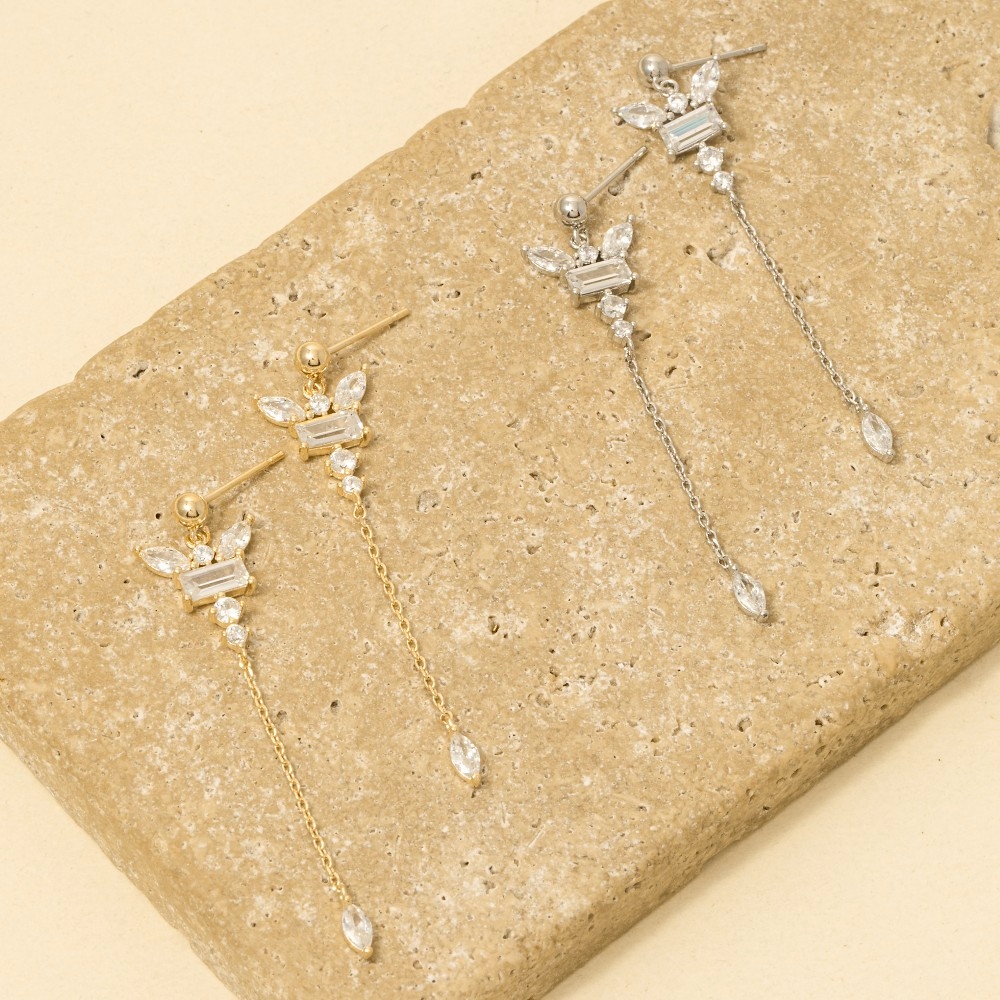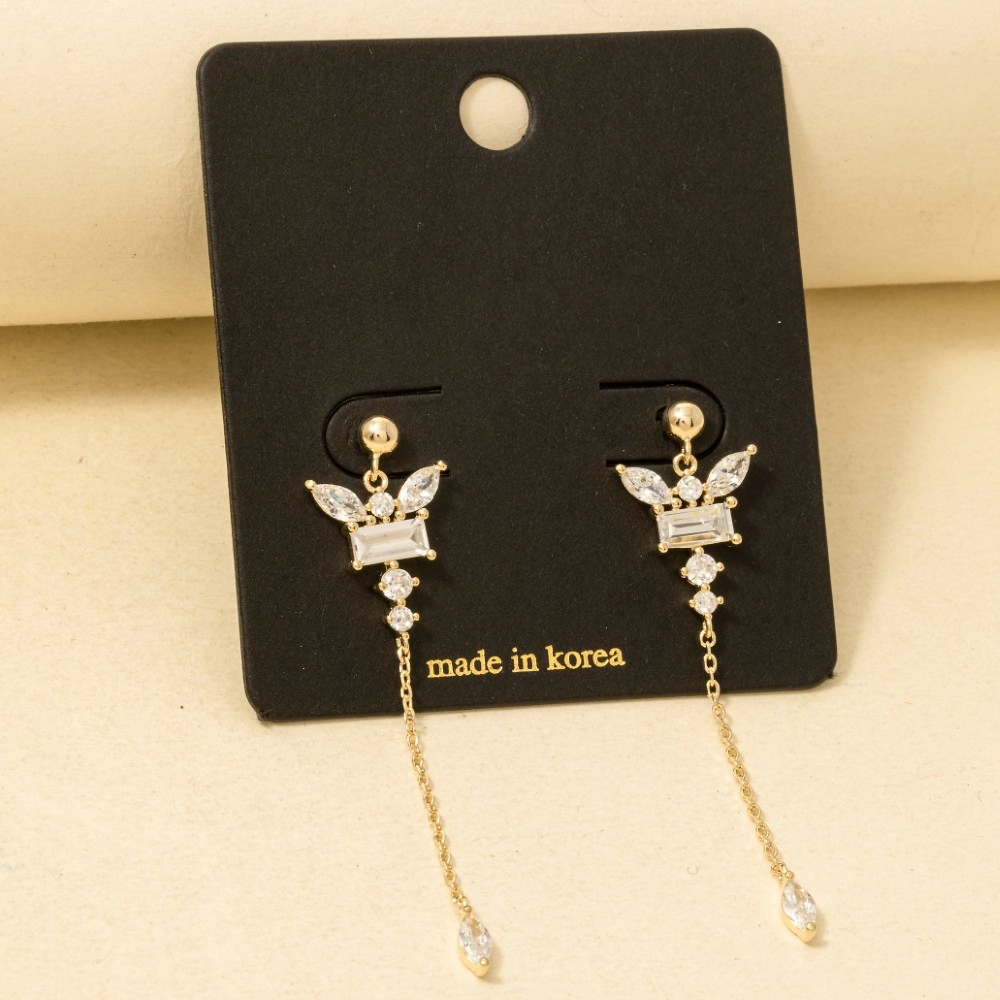 This pair of dangle earrings is made with 40% Brass and 60% Cz.