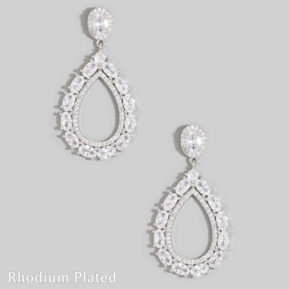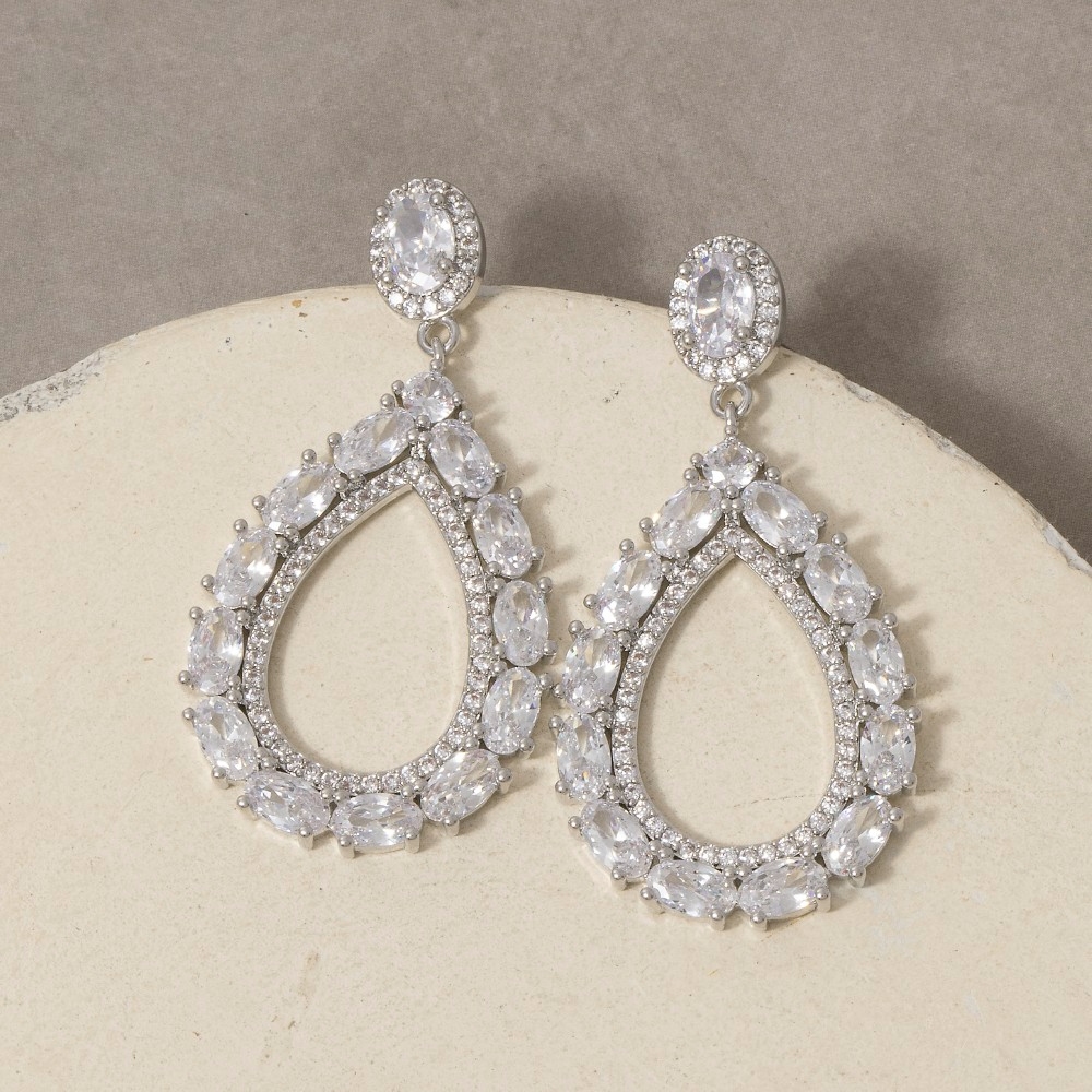 - A stunning addition to any jewelry collection, this pair of drop earrings features a distinct cz studded teardrop earrings design. Experience the transformative power of this versatile pair of drop earrings, effortlessly enhancing the overall aesthetic of your outfit. Available in CRRH. This item is sold in packs of 1.