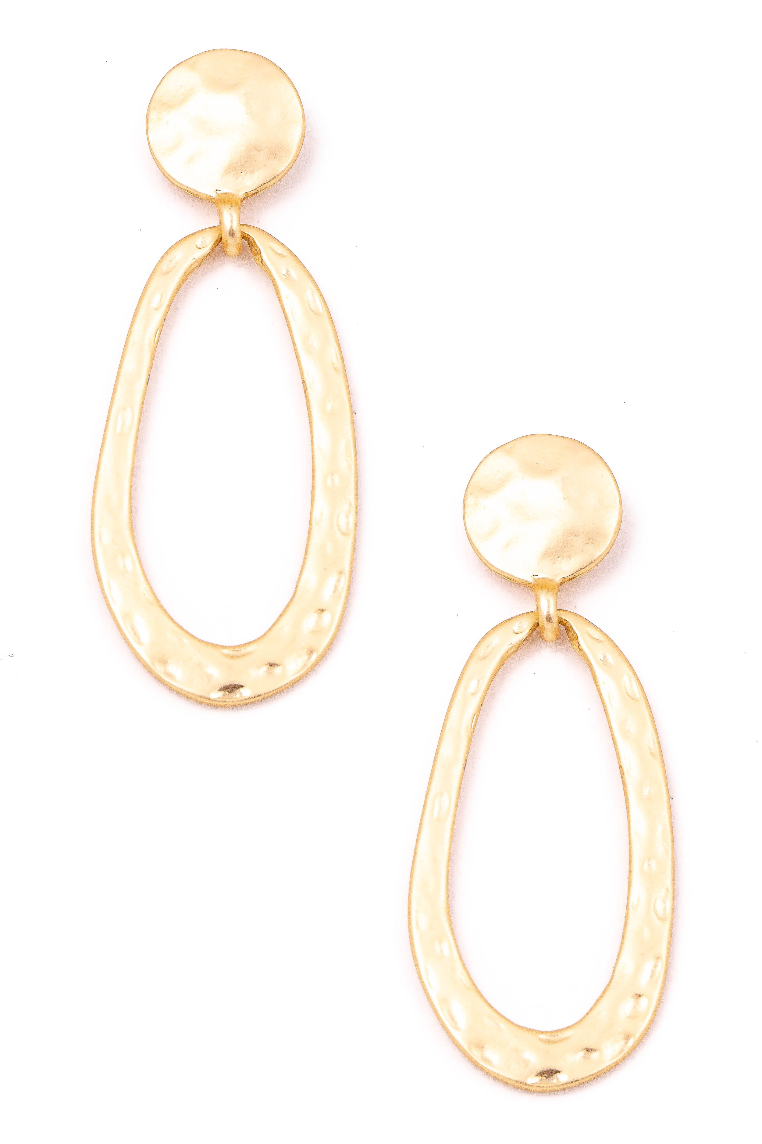 • This is a guaranteed show stopper must have pair of earrings has a dented oval dangle hoop earring design. This is a gorgeous chic accessory that everyone will want! Available in Mg and Ms.