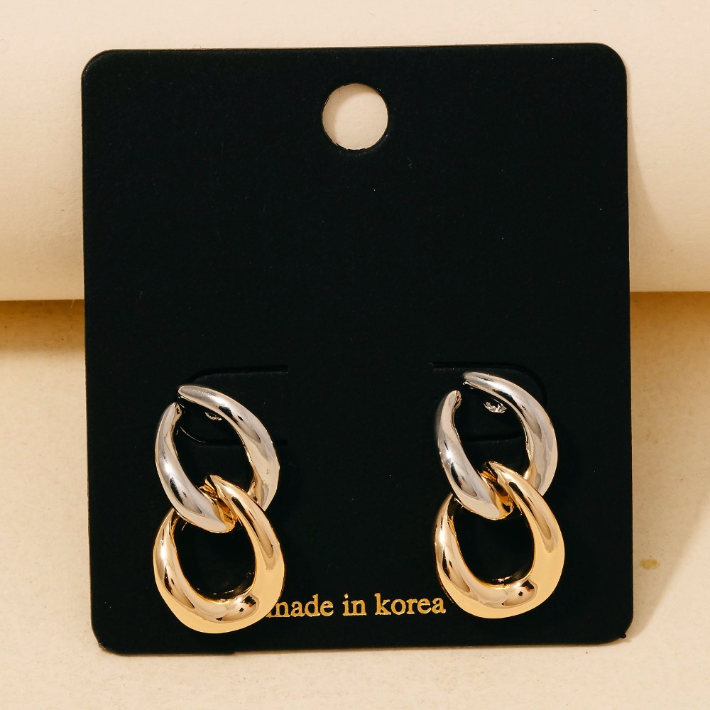 • Elevate any look, this pair of dangle earrings encompasses a grand double chain link design. Infuse a hint of luxury into your daily attire with this versatile pair of dangle earrings, a must-have for those who appreciate timeless elegance. Available in G, TT. This item is sold in packs of 1.
