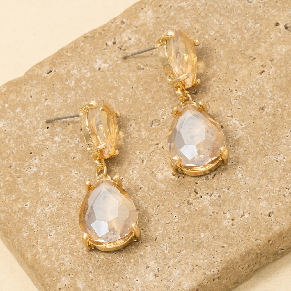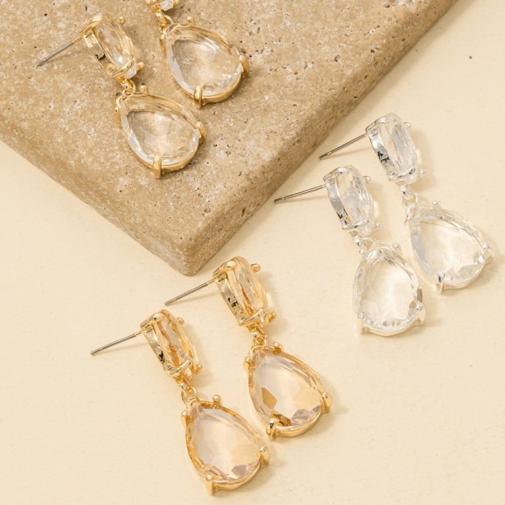 Perfect for any fashion-forward individual, this pair of dangle earrings includes a stunning double faceted teardrop design. This pair of dangle earrings is the perfect way to add a touch of elegance to any outfit. Available in GCL, GTPAB, SCL. This item is sold in packs of 1.