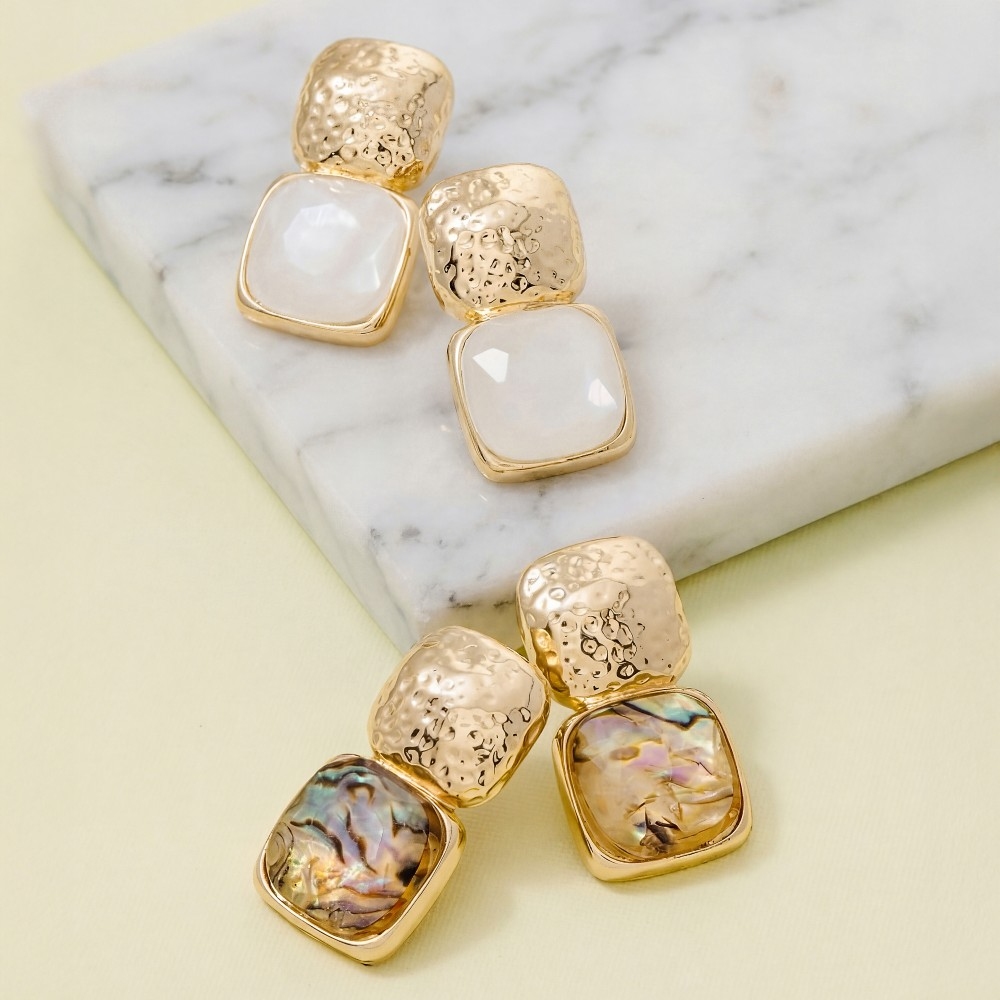 - A versatile piece that can be dressed up or down, this pair of drop earrings exudes a refined faceted stone design. This versatile pair of drop earrings adds a touch of elegance to any outfit. Available in ABLN, MOP. This item is sold in packs of 1.