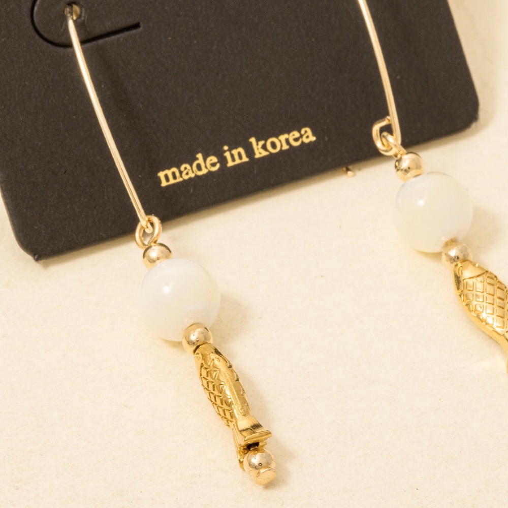 Perfect for any occasion, from casual to formal, this pair of dangle earrings brings a one-of-a-kind fish and bead charm design. Discover a new level of fashion versatility as this pair of dangle earrings effortlessly elevates the allure of your attire. Available in GOLD. This item is sold in packs of 1.