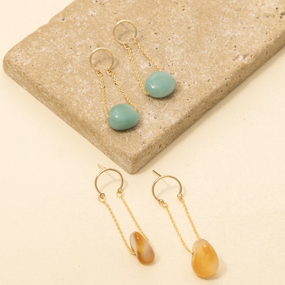 • This pair of dangle earrings is made with 30% Brass and 70% Gmestone.