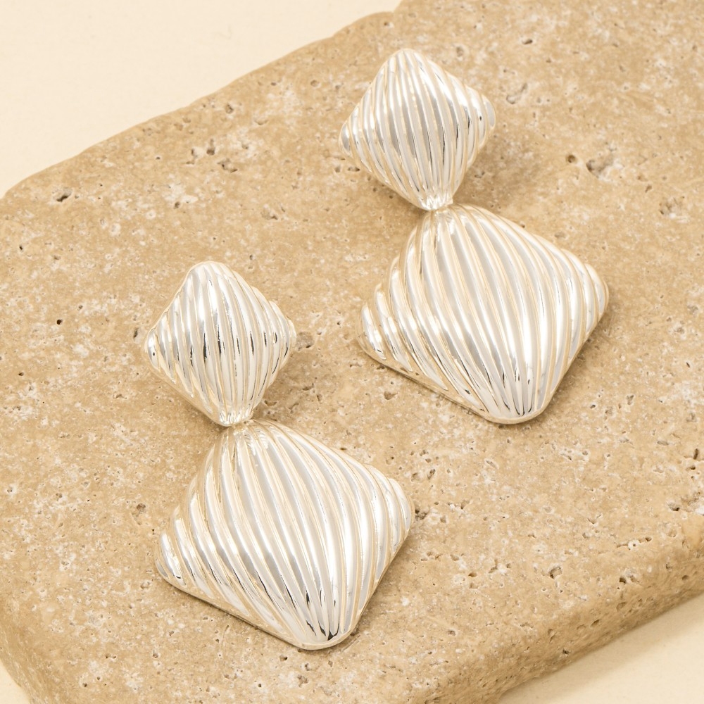 - A must-have addition to any pair of dangle earrings collection, this pair of dangle earrings presents a striking gold dipped double square design. Transform your outfit from ordinary to extraordinary with the touch of elegance provided by this versatile pair of dangle earrings. Available in 14KGD, SIL. This item is sold in packs of 1.
