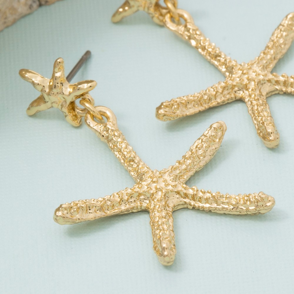• A contemporary masterpiece, this pair of dangle earrings presents a striking gold dipped double star fish stud design. This item is perfect for anyone who loves to accessorize and add some personality to their outfits. Available in GOLD, 2SILVER. This item is sold in packs of 1.