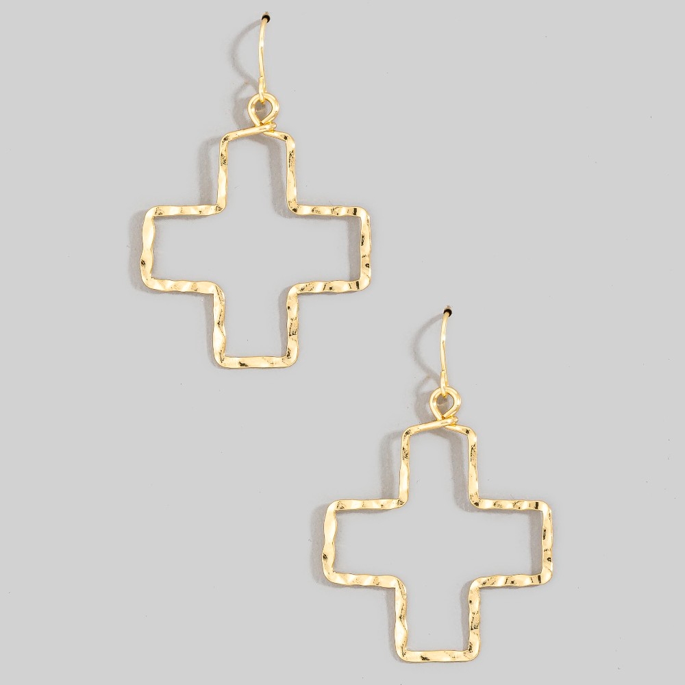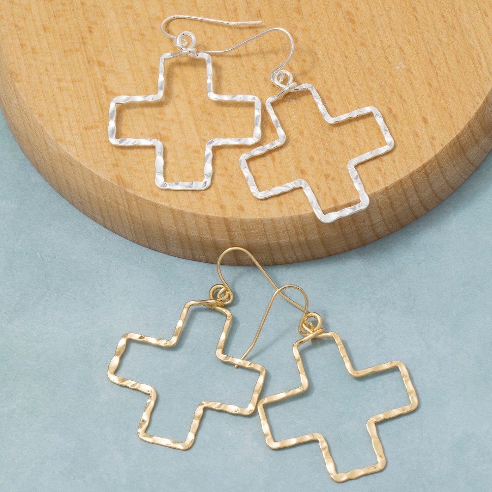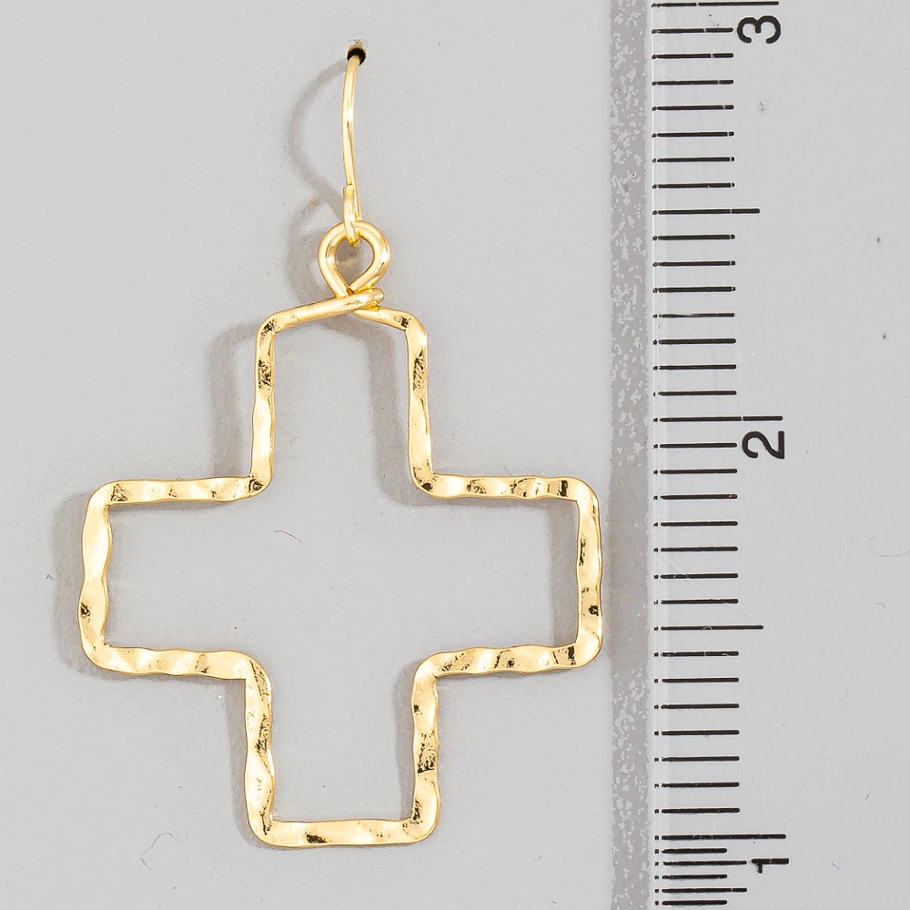 • Sleek, modern, and always stylish, this pair of dangle earrings presents a striking gold dipped hammered cross design. A chic and sophisticated pair of dangle earrings that's perfect for dressing up or down. Available in GD, SV. This item is sold in packs of 1.