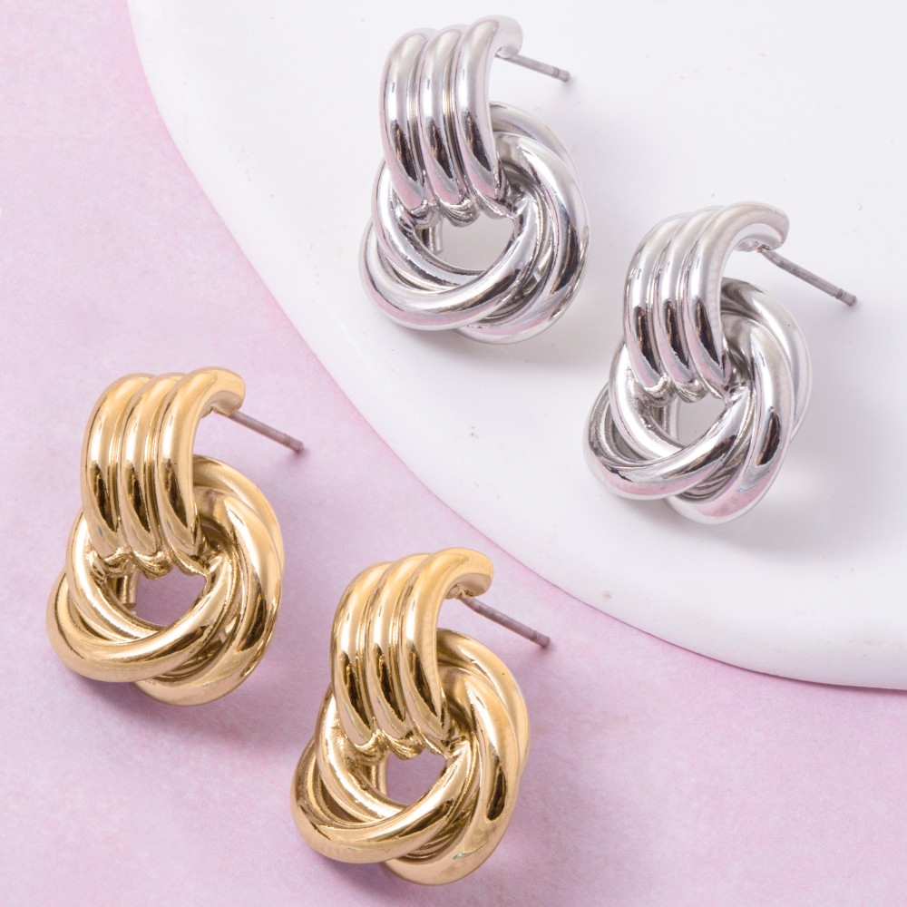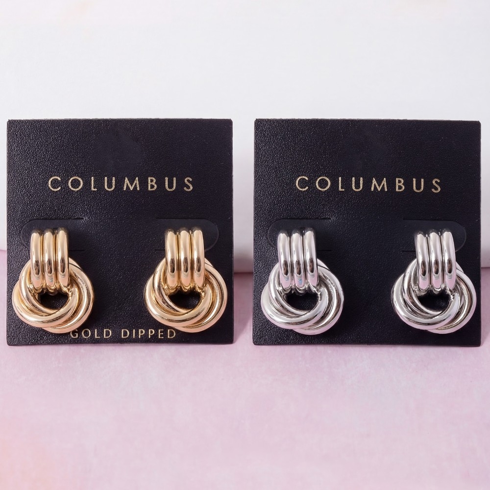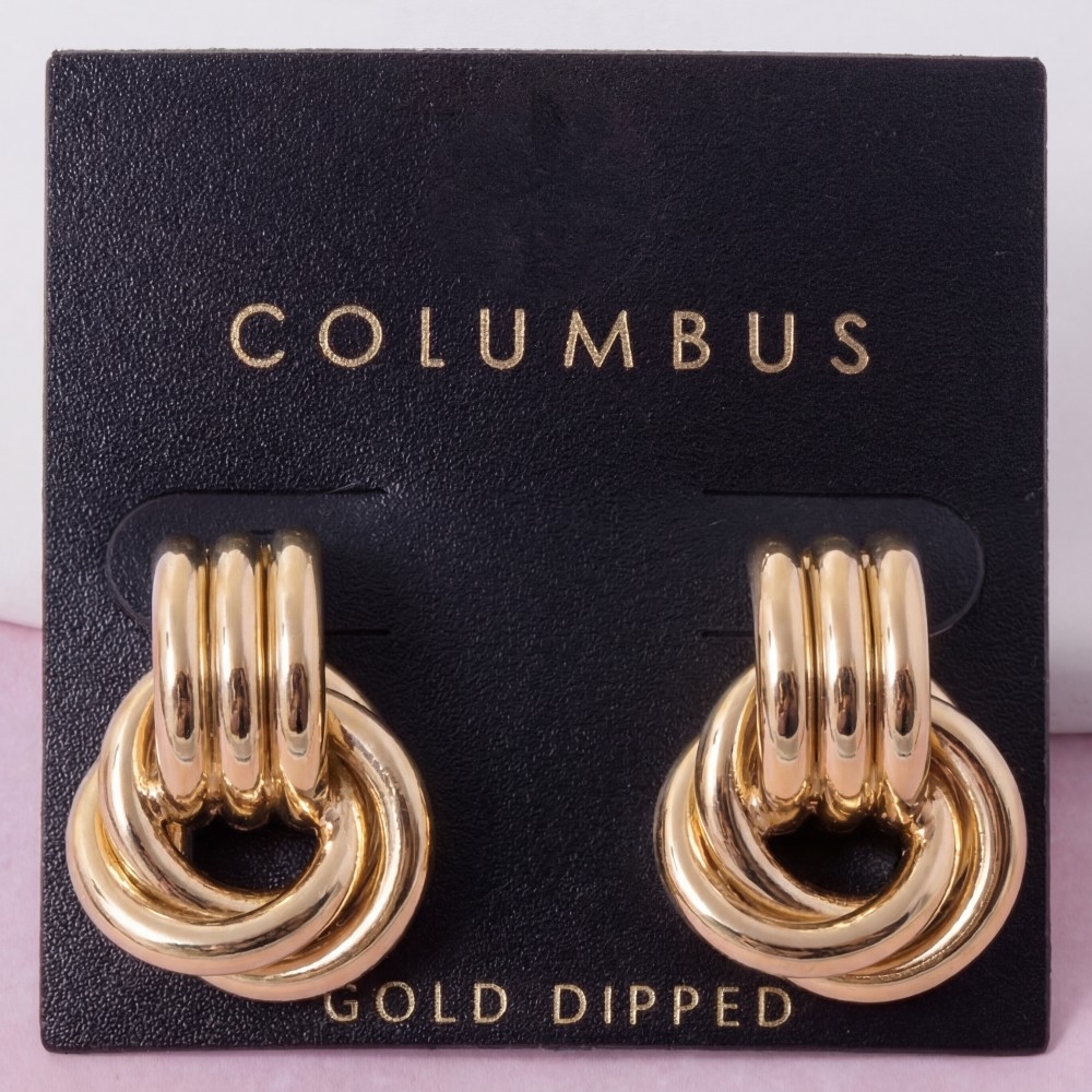 Effortlessly elevate your outfit, this pair of earrings evokes a captivating gold dipped layered door knocker design. Infuse a hint of luxury into your daily attire with this versatile pair of earrings, a must-have for those who appreciate timeless elegance. This item is sold in packs of 1.