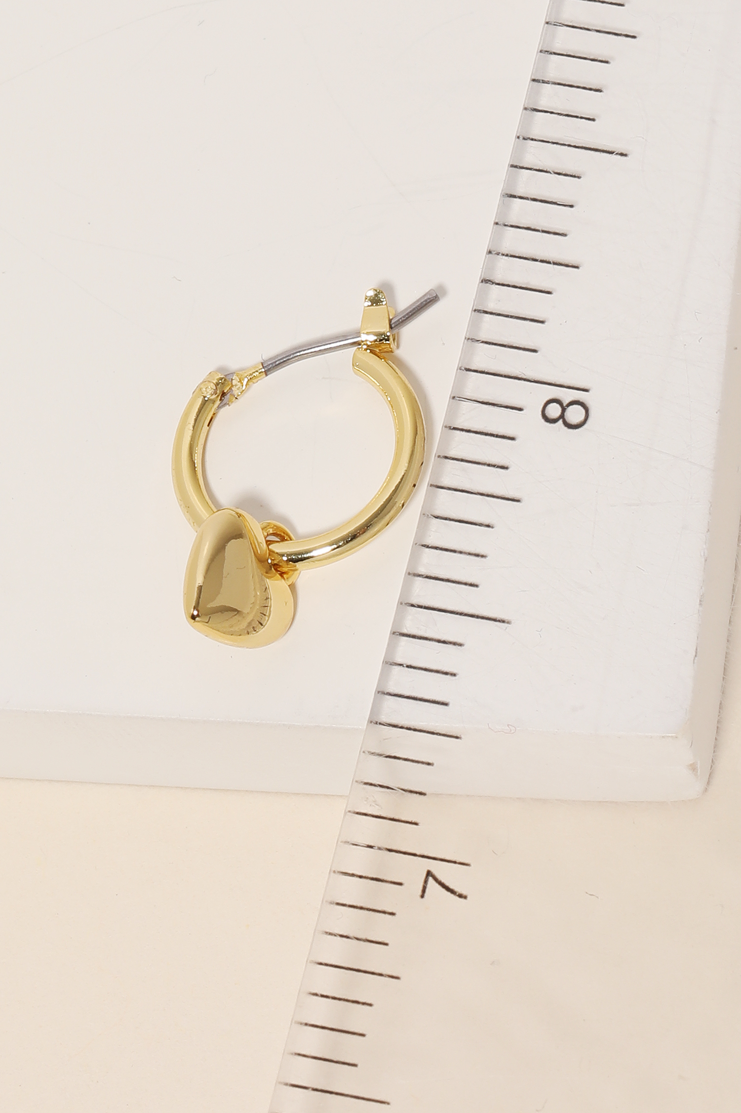 • A classic charming must have pair of earrings is made with detailed metallic heart charms metallic hoop earring design. Perfect for business casual occasions! This pair of earrings measures 0.75' in length.
