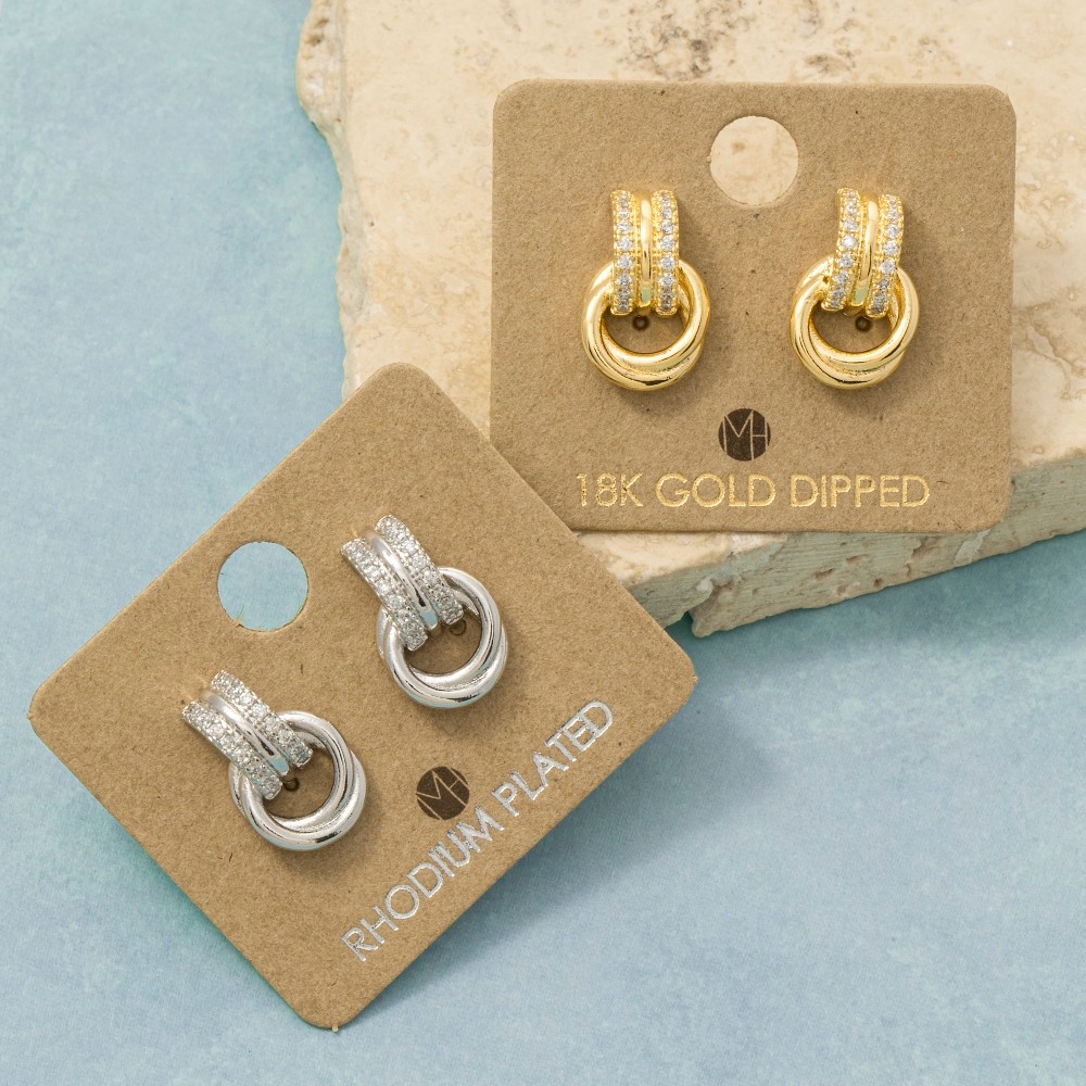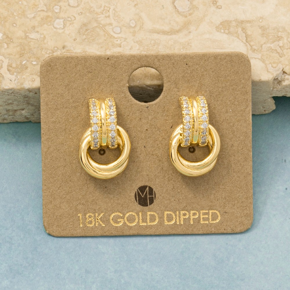 - The perfect way to showcase your unique style, this pair of earrings shows off a distinctive gold dipped pave ring linked design. This pair of earrings is an effortless way to add some personality to your outfit. Available in G, S. This item is sold in packs of 1.