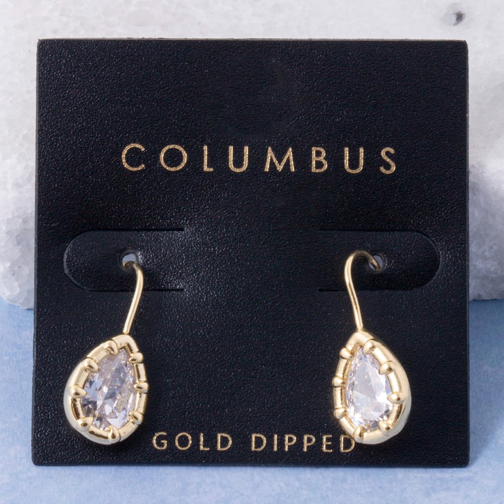• Perfect for any occasion, from casual to formal, this pair of dangle earrings introduces an exceptional gold dipped teardrop cut cubic zirconia design. Unleash the charm of this versatile pair of dangle earrings, effortlessly turning any outfit into a fashion statement. Available in GOLD,2SILVER. This item is sold in packs of 1.