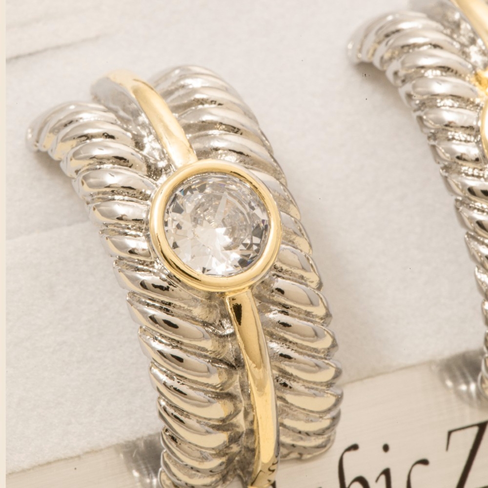 • Perfectly versatile and endlessly stylish, this pair of earrings highlights a special gold dipped two tone cubic zirconia stud rope pattern design. Upgrade your fashion game with this versatile pair of earrings, a timeless addition that complements any outfit seamlessly. Available in T. This item is sold in packs of 1.