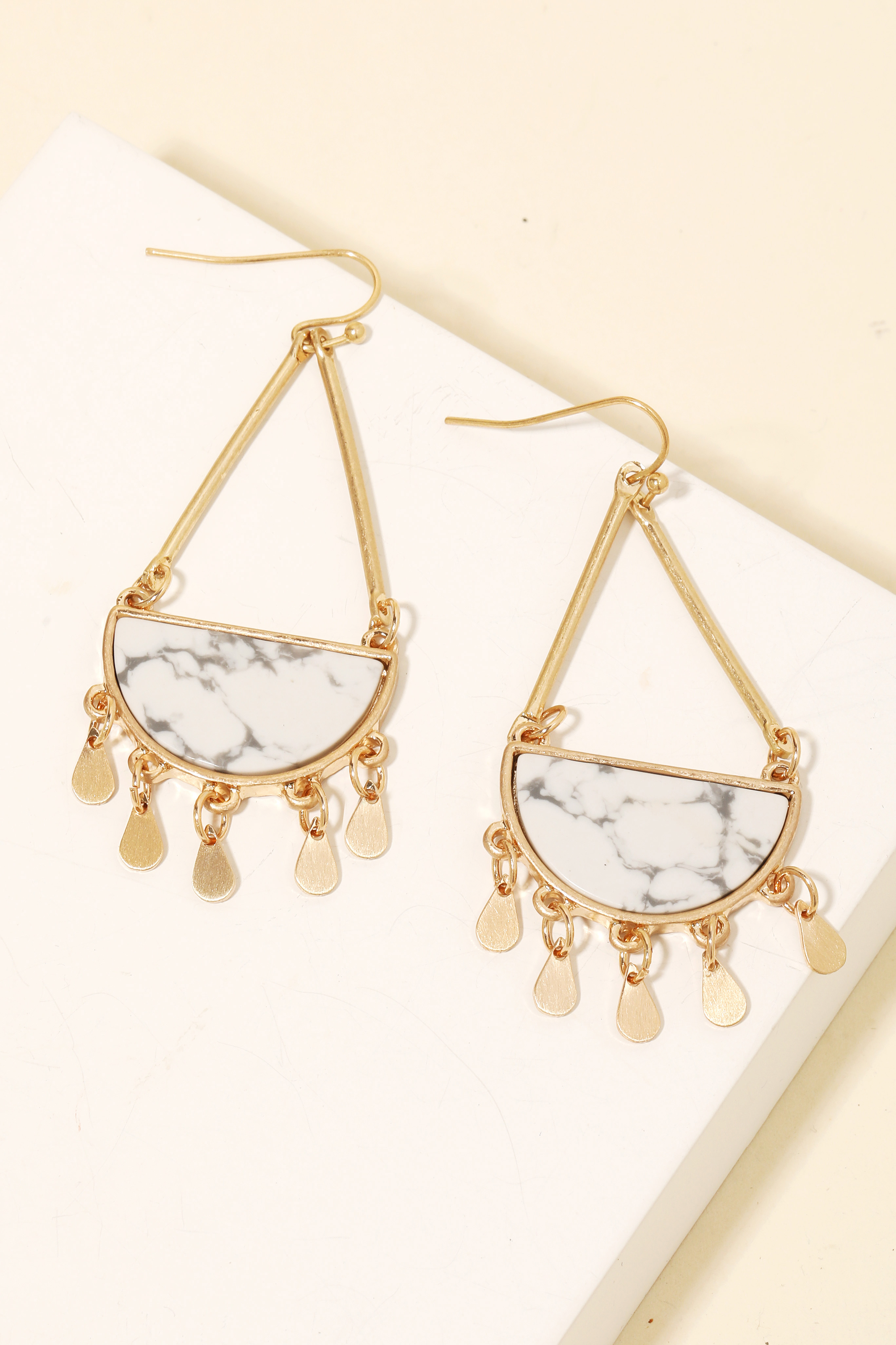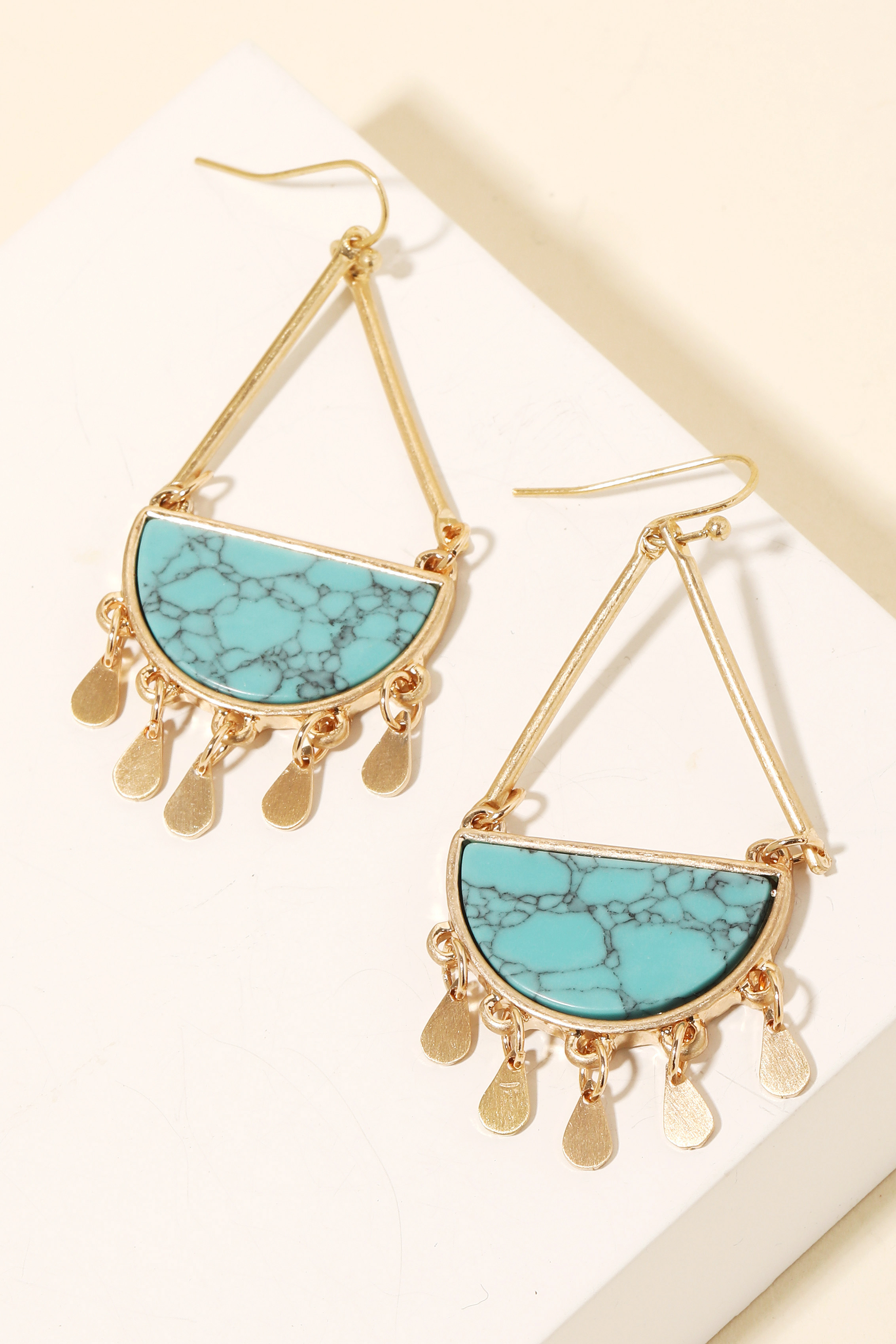 Half Stone Tear Dangle Fringe Earrings