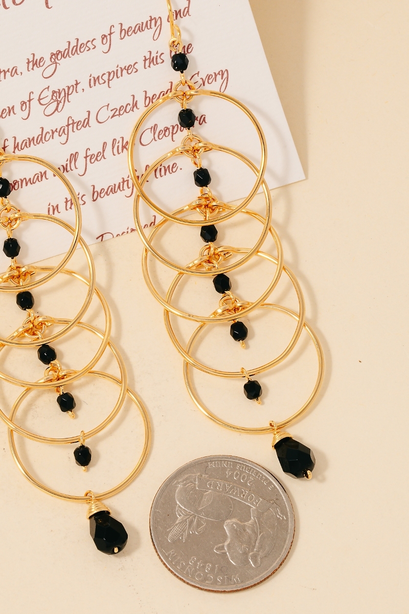 • A stunning addition to any jewelry collection, this pair of earrings includes a stunning hoops and black beads dangle chain design. Redefine your wardrobe with this versatile pair of earrings, a timeless addition that brings an air of sophistication to any look. Available in Black. This item is sold in packs of 1.