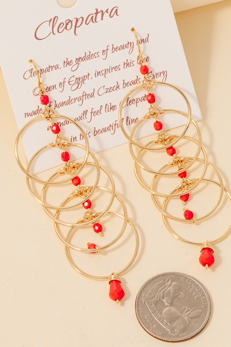 • Make a statement, this pair of earrings exudes a refined hoops and rust orange beads dangle chain design. Redefine your fashion identity with this versatile pair of earrings, a timeless piece that complements any wardrobe. Available in Rust Orange. This item is sold in packs of 1.