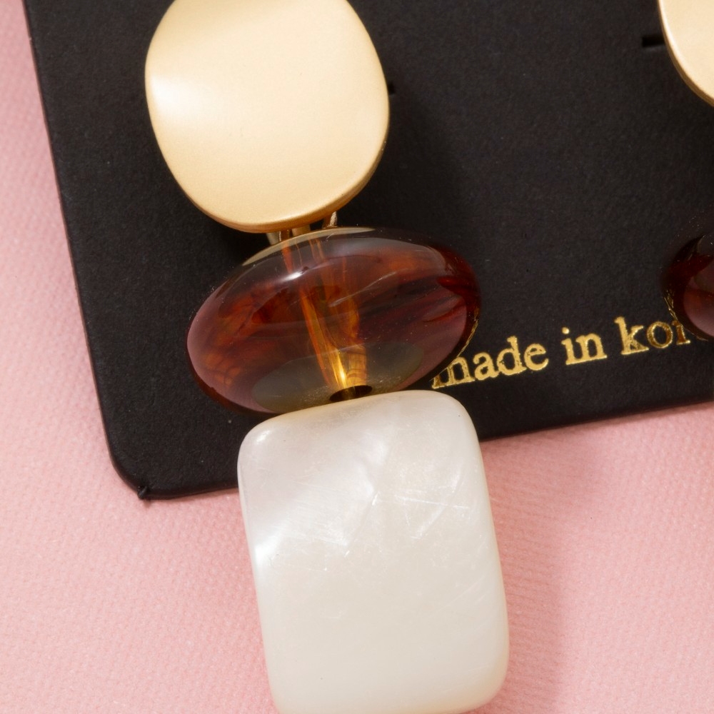 - This pair of drop earrings is made with 40% Zinc, 20% Acrylic and 40% Shell.