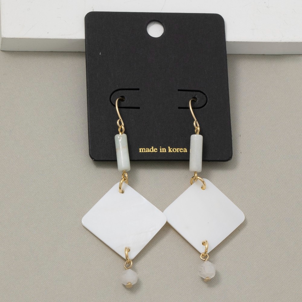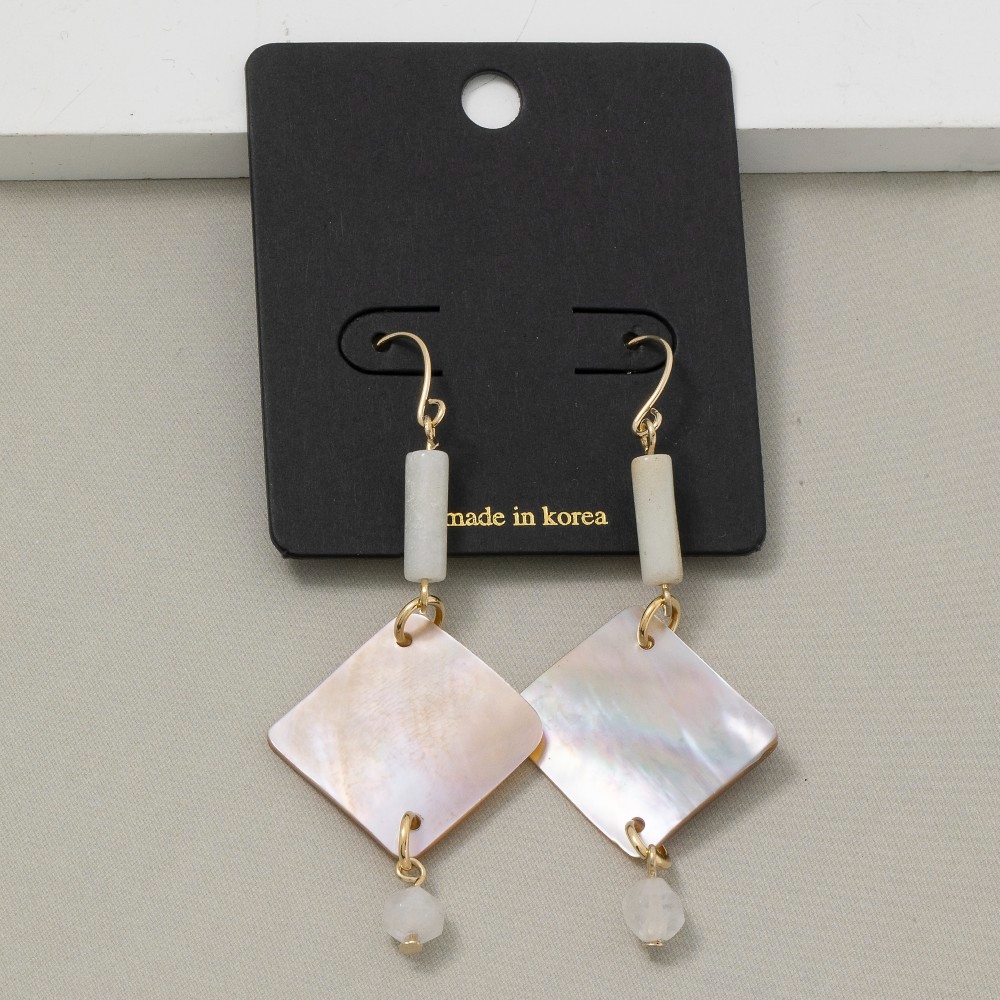 This pair of earrings is made with 5% Brass, 30% Gemstone and 65% Shell.