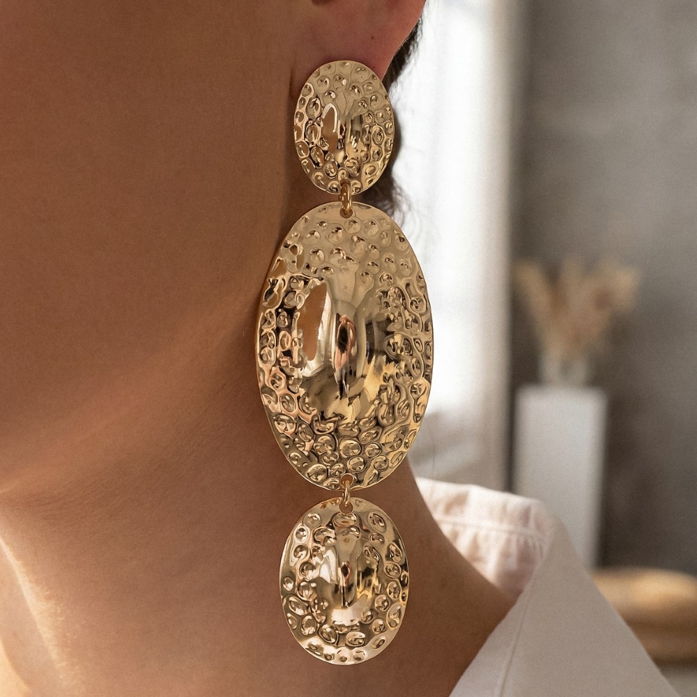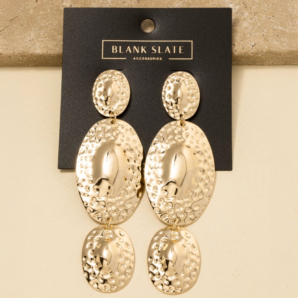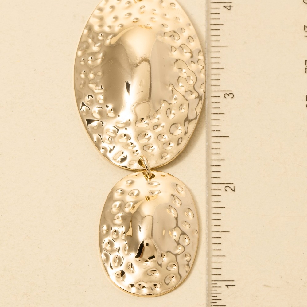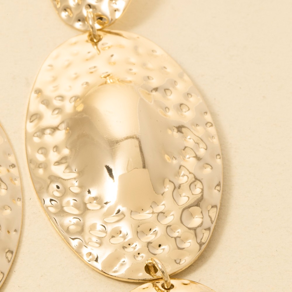 Upgrade your pair of dangle earrings game, this pair of dangle earrings carries a charming large hammered ovals tiered design. Experience the transformative power of this versatile pair of dangle earrings, effortlessly enhancing the overall aesthetic of your outfit. Available in G. This item is sold in packs of 1.