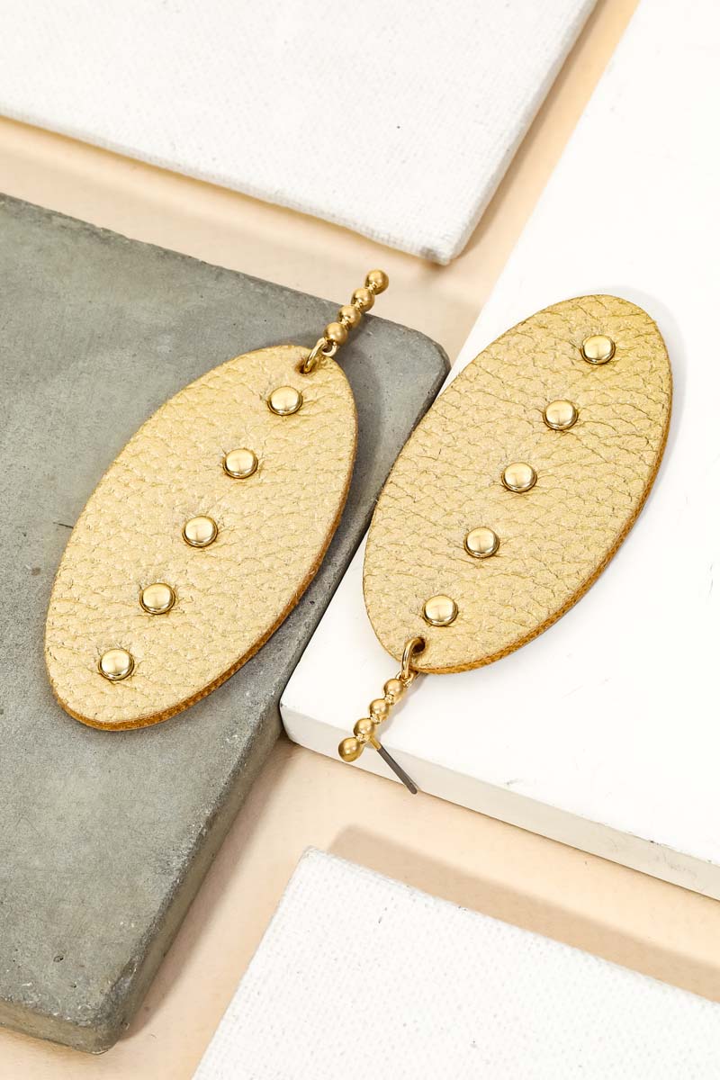 Leather Oval Drop Earrings
